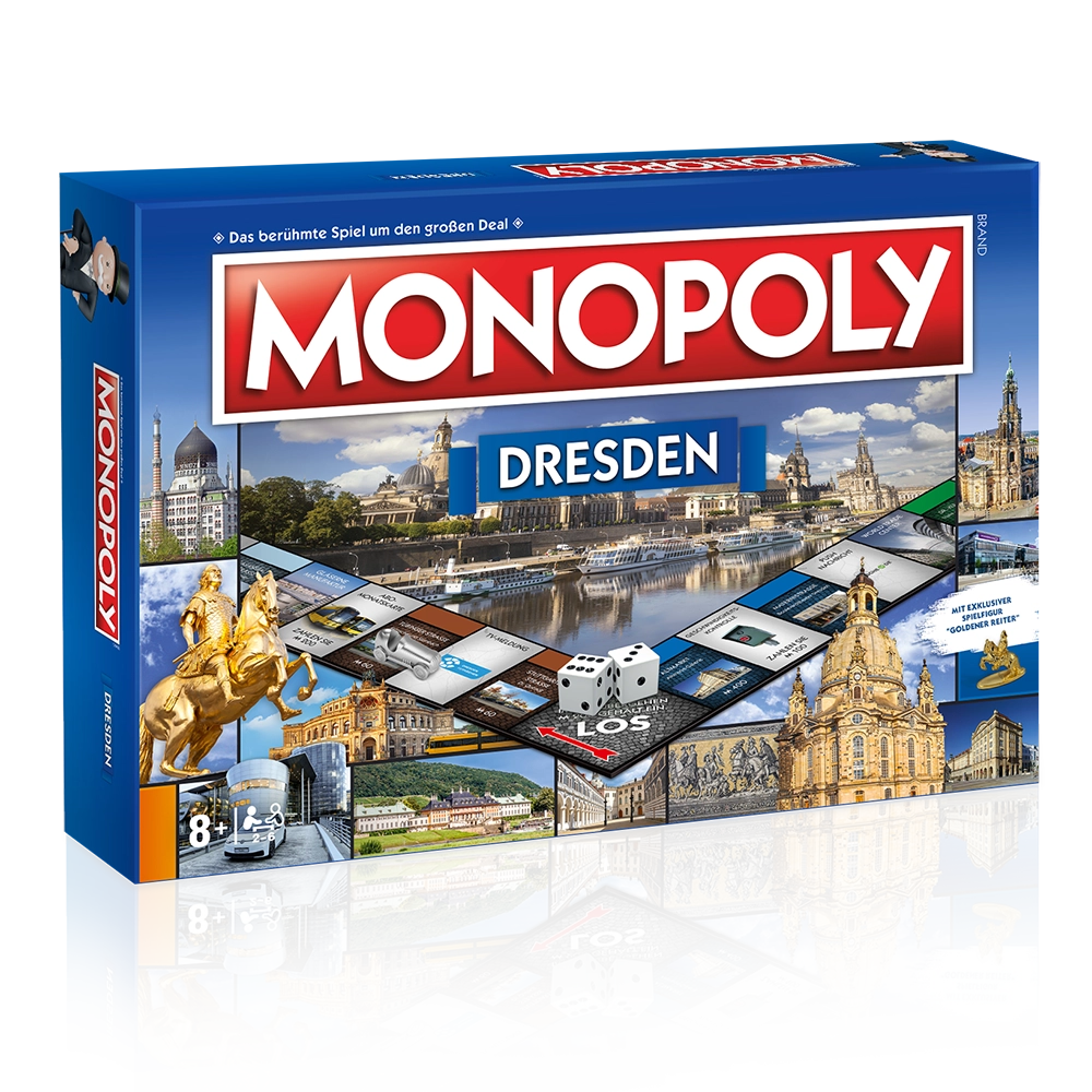 Atemberaubende Kunstschätze, beeindruckende Zeugen barocker Architektur, die größte Raddampferflotte der Welt, unzählige Museen, Theater, Lebensfreude pur – all das ist Dresden. Die sächsische Landeshauptstadt ist berühmt für die Semperoper, die Frauenkirche, die Gläserne Manufaktur und die Neustadt – mit der MONOPOLY Stadtedition Dresden findet diese Vielfalt nun auch ihren Weg auf das berühmteste Brettspiel der Welt.